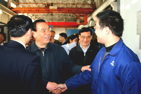 呂省長在精機公司加工車間時,與精機公司經(jīng)理潘順昌、副經(jīng)理杜建勝親切握手并交談,當(dāng)呂省長得知他們現(xiàn)是該公司的管理人員,并已在企業(yè)工作幾十年,欣喜地對周圍人員說,看上去那么年輕,卻有豐富的實踐經(jīng)驗,這是企業(yè)的寶貴財富。呂省長感慨地說,杭機集團發(fā)展很快,原來廠區(qū)在環(huán)城東路時,就有近二千名員工,而現(xiàn)在人員減少,經(jīng)濟效益卻明顯提高,變化真大。呂省長指出,要充分認(rèn)識加快發(fā)展裝備制造業(yè)的重要性和緊迫性,進一步加快發(fā)展裝備制造業(yè),推動產(chǎn)業(yè)結(jié)構(gòu)優(yōu)化升級和經(jīng)濟增長方式轉(zhuǎn)變。