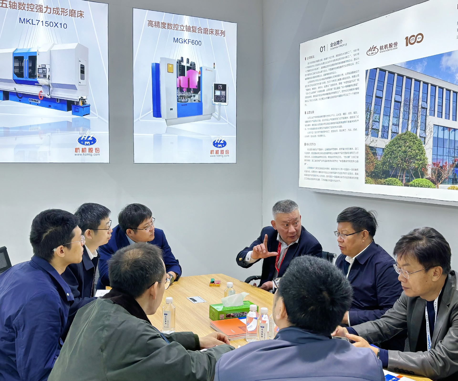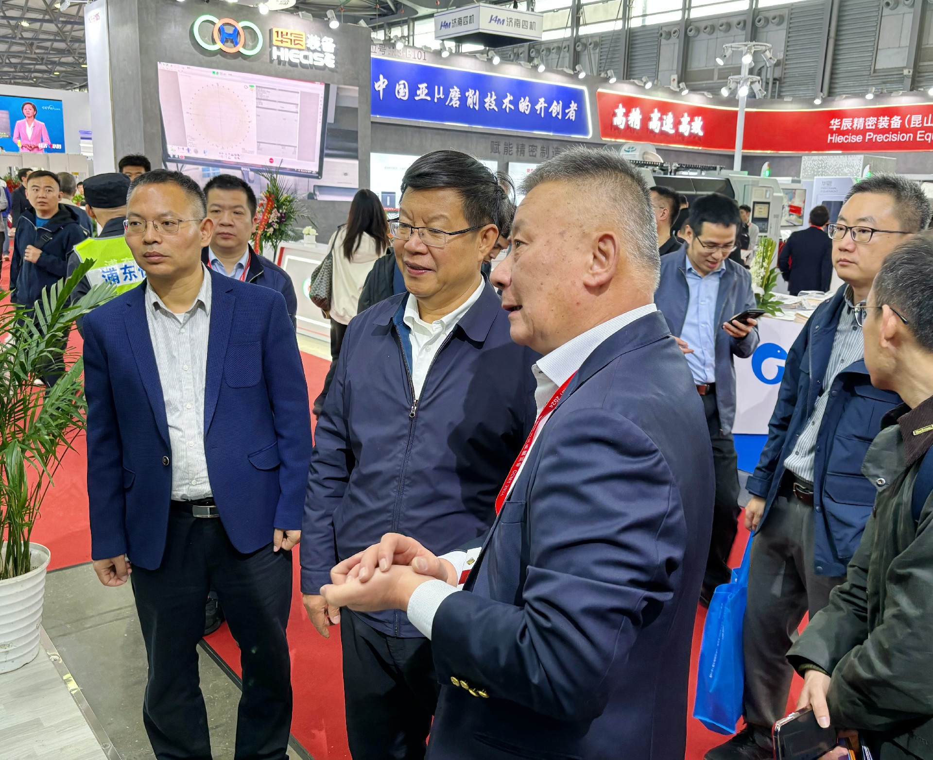 4月10號(hào)上午,中國機(jī)械科學(xué)研究總院董事長王德成帶領(lǐng)集團(tuán)有關(guān)部門領(lǐng)導(dǎo)到訪杭機(jī)展臺(tái),并與杭機(jī)股份副董事長孫益民、總經(jīng)理金正鋼等進(jìn)行深入交流。