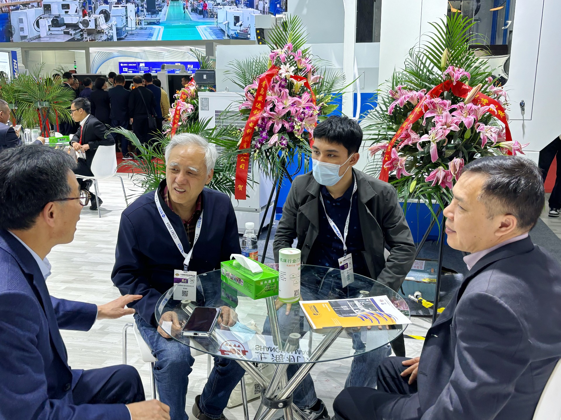 4月9日上午,北一大隈總經(jīng)理北河勝義、北一大隈副總經(jīng)理李金勇到訪杭機(jī)股份展臺(tái),與杭機(jī)股份副董事長孫益民,總經(jīng)理金正鋼,常務(wù)副總經(jīng)理孫冬平交流探討。